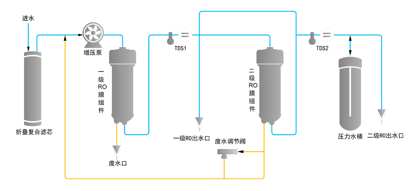 | 二級(jí)RO水 | 二級(jí)RO水離子截留率>99%(新膜),電導(dǎo)率≤5μs/cm;有機(jī)物/顆粒/細(xì)菌截留率同上; 國(guó)標(biāo)三級(jí)水(僅RRO/RS) | |||