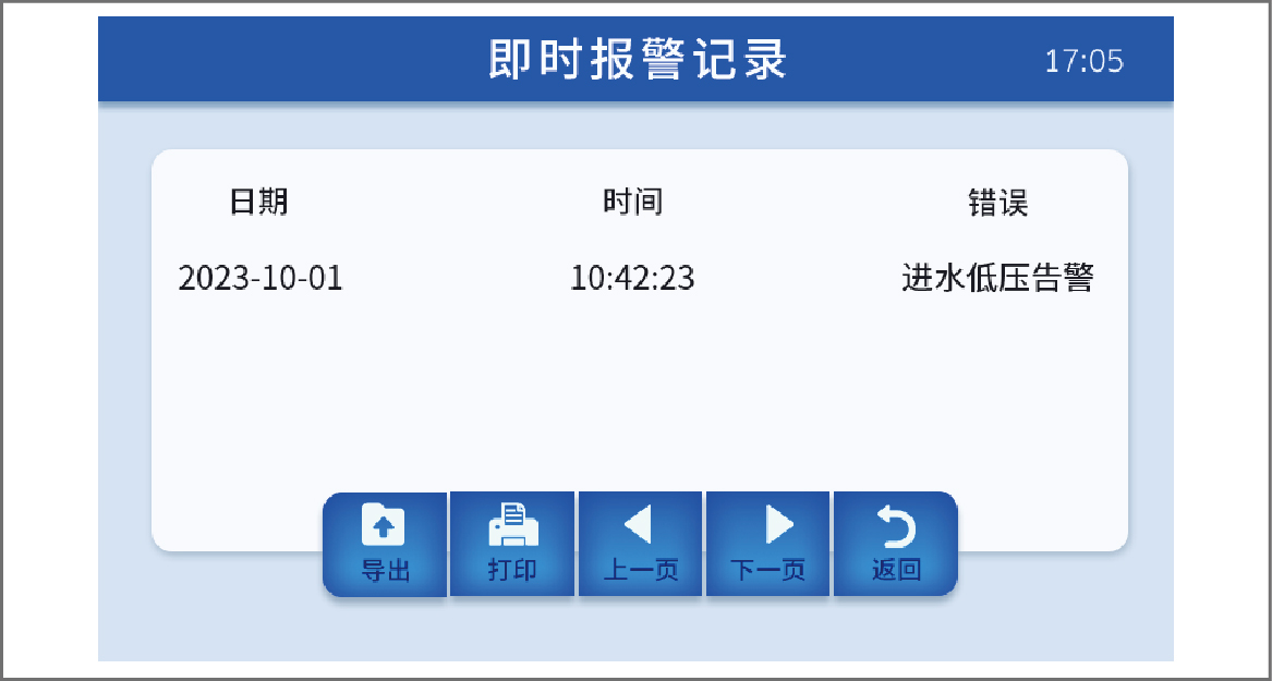 - ·缺水報(bào)警、水箱水滿報(bào)警、源水、RO 反滲透水、DI 去離子水 /UP 超純水水質(zhì)超標(biāo)報(bào)警等自動(dòng)檢測(cè)報(bào)警功能,提供安全保證