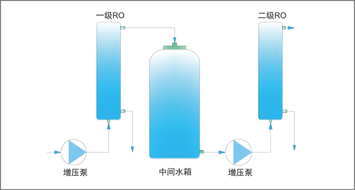 - · 采用雙泵雙膜及過渡水箱,使系統(tǒng)能耗更低、廢水更少,產(chǎn)水質(zhì)量更穩(wěn)定.